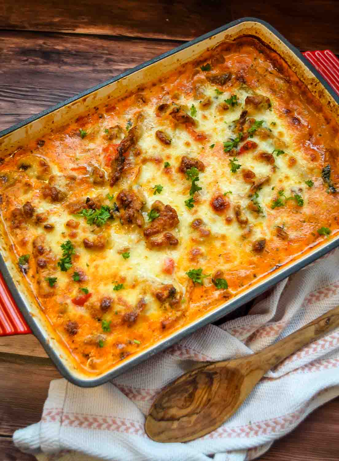 Herzhaft überbackener Gyros Auflauf mit Käse