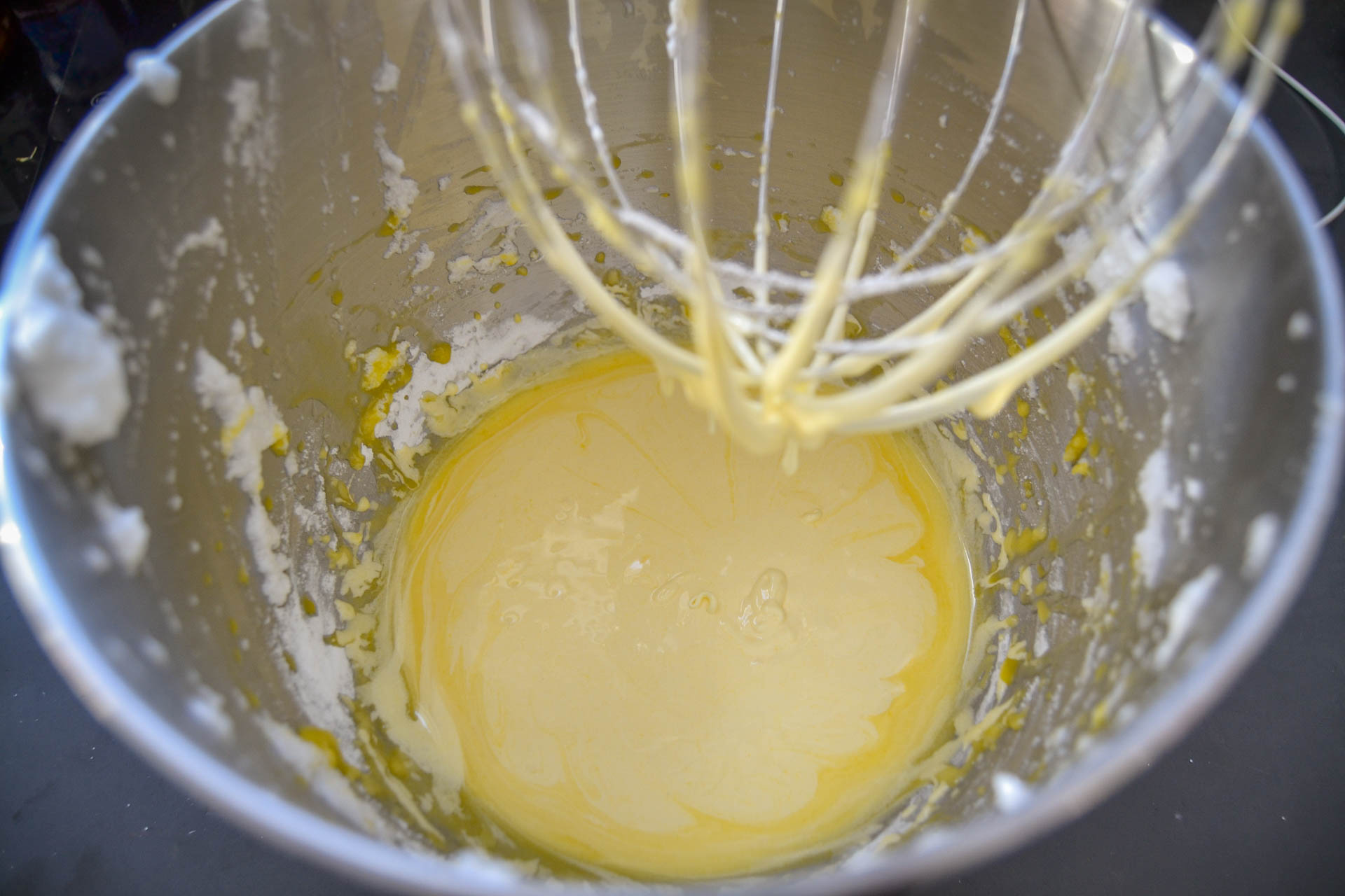 - die Eigelbe mit dem Puderzucker schön cremig rühren, den Baileys und die flüssige Butter langsam dazu gießen. Dann das gemischte Mehl in kleinen Portionen unter den Teig rühren