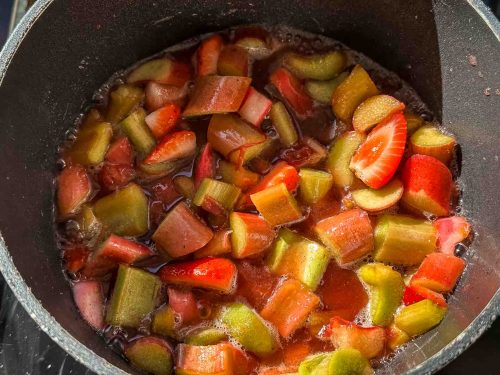 - Koche den Rhabarber ca. 10 Minuten, zwischendurch rühre ich 1-2 mal um.