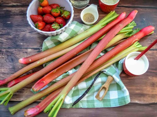 Wenn du empfindlich auf Rhabarber reagierst oder viel davon essen möchtest, kannst du jungen roten Rhabarber verwenden, die Stangen schälen oder den Kompott mit etwas Milchreis, Vanillesoße oder Sahne servieren. Milchprodukte enthalten Calcium und passen deshalb besonders gut zu Rhabarber.