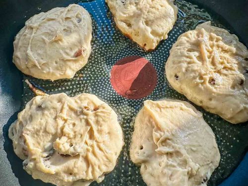 Ja, das ist problemlos möglich. Traditionell gehören Rosinen dazu, aber ohne schmecken sie ebenfalls sehr gut. Alternativ könntest du auch statt der Rosinen ein paar klein gewürfelte Apfelstückchen mit in den Teig mischen.