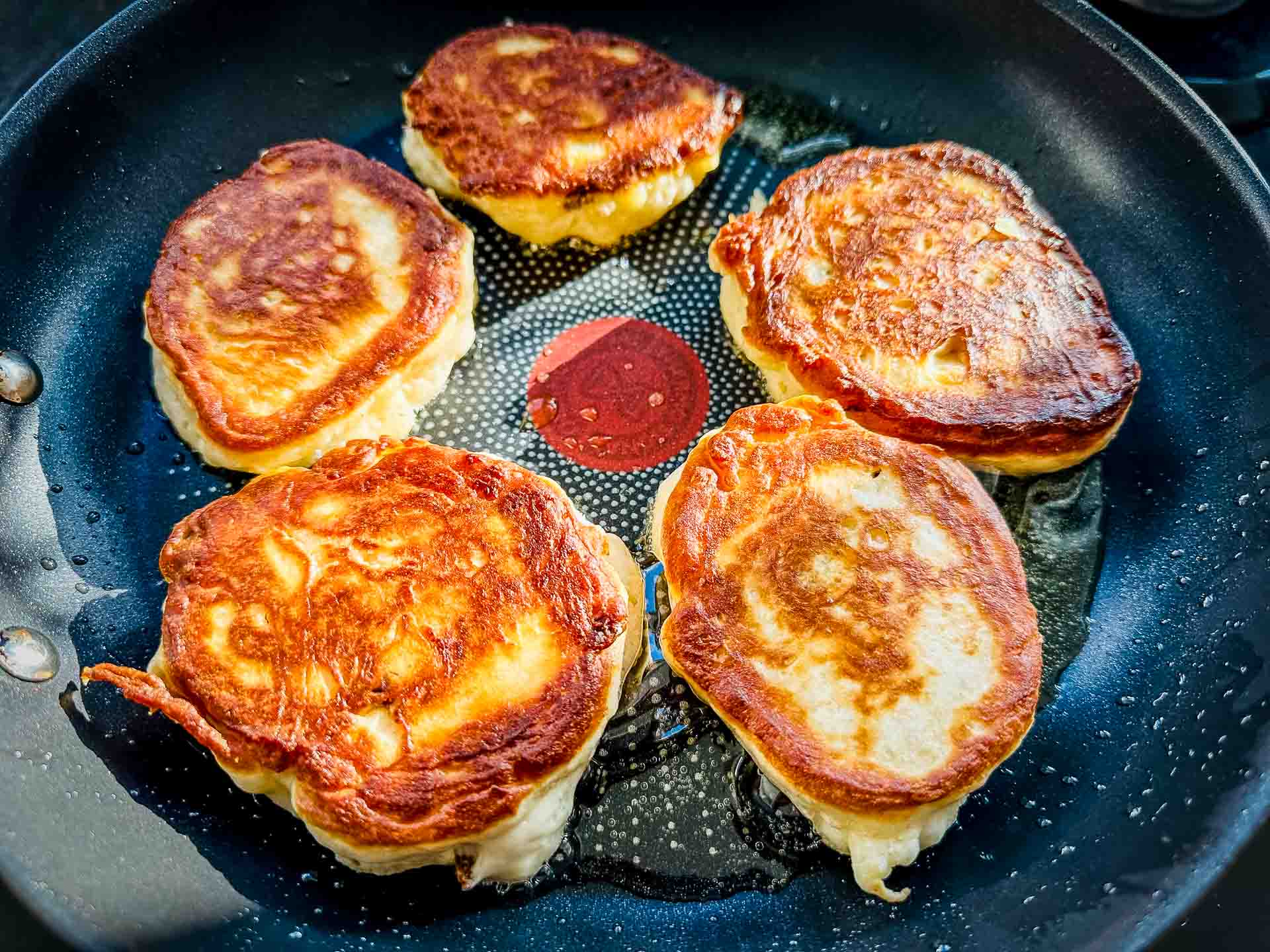 • Wenden und fertig backen: Wende die Struwen nach etwa 2–3 Minuten und backe sie weitere 2–3 Minuten, bis sie von beiden Seiten schön goldbraun sind. Reduziere die Hitze bei Bedarf etwas, damit sie nicht zu dunkel werden. Wenn du mit Gas kochst, gelingt das Ausbacken gut auf kleiner bis mittlerer Stufe.