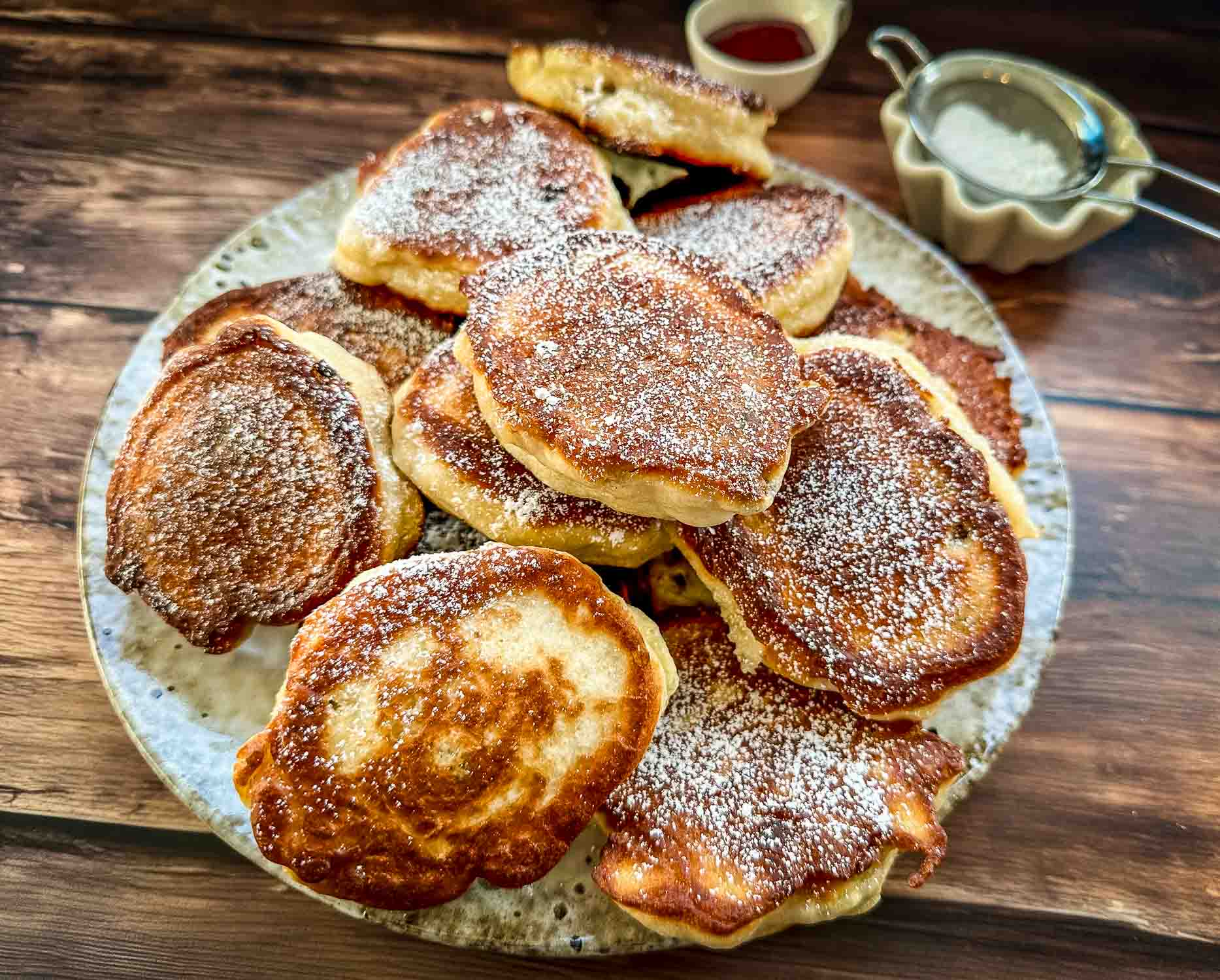 Dieses Struwen-Rezept begleitet mich schon seit meiner Kindheit. Ich habe es von meiner Oma übernommen und backe die kleinen Hefepfannkuchen bis heute jedes Jahr zu Karfreitag genauso, wie ich es von früher kenne. Über die Jahre habe ich den Teig unzählige Male zubereitet und immer wieder gemerkt, wie wichtig die richtige Gehzeit und die Temperatur beim Ausbacken sind, damit die Struwen schön locker und goldbraun gelingen.
