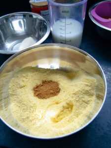 Das Maismehl mit Milch und Wasser, Salz und Panela zu einem weichen Teig kneten, 10 Minuten quellen lassen. g vorgekochtes Maismehl muss 5 Minuten - 10 Minuten ruhen, damit die Masse das Wasser ganz aufnimmt.