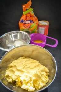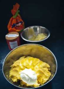 Den Frischkäse und die Butter mit dem Teig vermischen.