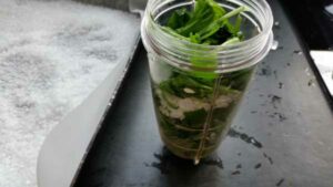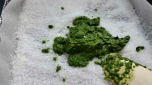 Das Bärlauch zu dem Salz geben