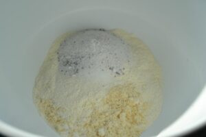 Mehl, gemahlene Mandeln , Vanillemark, Salz und Zucker vermischen
