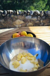 - 1 cl Brandy oder Weinbrand für die Mandelcreme nur wer mag