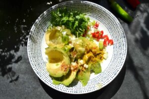 Die Avocadocreme in einen Spritzbeutel füllen und kühlen