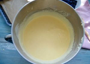 Alle Zutaten bereitstellen und wiegen. Den Backofen auf 160 Grad Umluft vorheizen. Die Backform fetten und den Boden mit einem Backpapier auslegen. Die Blaubeeren waschen und abtropfen lassen. Die Butter in der Mikrowelle 30 Sekunden schmelzen.