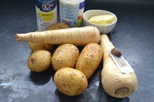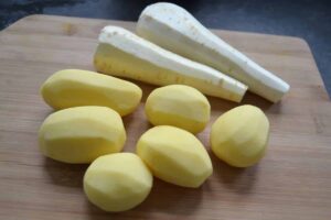 das Kochwasser von den Pastinaken und Kartoffeln abschütten und dann