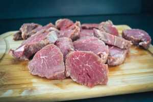 Das Rinderfilet in fingerdicke Scheiben schneiden