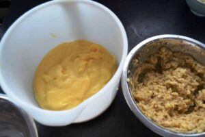 Nun beide Cremes zu gleichen Teilen bei mir waren es 8 große Esslöffel von der Vanillecreme die ich in die Mandelcreme gerührt habe