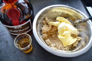 und dem Grand Marnier gut verrühren bis sich der Zucker auf gelöst hat und kurz für 1 - 2 Minuten in der Mikrowelle erhitzen .