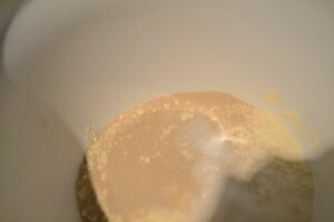 und mit der Trockenhefe und dem Salz mischen. Die Milch und die Butter leicht erwärmen