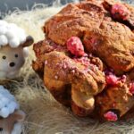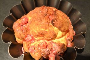 Dieses leckere Brioche Praline rosé aus Burgund und schmeckt köstlich mit den gebrannten rosa gefärbten Mandeln. Während des Backens schmilzt der rosa Zucker.