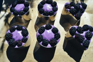 So konnte man sie sehr gut aus der Form lösen und sie waren wunderbar kühl. Wer mag gibt noch etwas Puderzucker über die Brombeeren