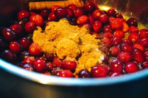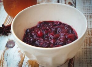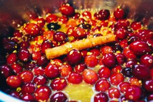 die Preiselbeeren waschen, mit einer Zimtstange und dem Sternanis