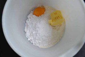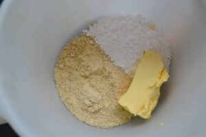 gemahlene Mandel, Butter, Maizena, Puderzucker mischen