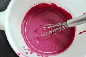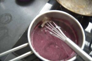 in das Johannisbeeren-Mousse die Gelatine rühren.