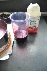 - 1 Glas Schwarze Johannisbeeren abgetropft 250 Gramm Saft auffangen