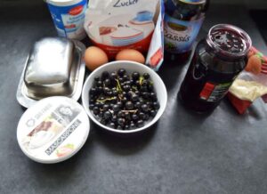 - 200 g frische Johannisbeeren schwarz kommen auf die Mousse unter den Spiegel