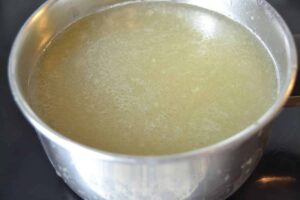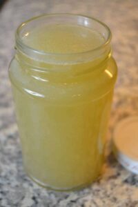 Sodass keine Gräten im Fond sind. Man kann ein Sieb auch mit Küchenpapier auslegen. Den Fischfond nun nochmal ca. 5 Minuten leicht kochen und dann in ein ausgekochtes Glas füllen.