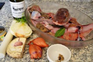 Die Fischköpfe und Gräten sehr gründlich waschen, die Kiemen solltest du entfernen, da sie den Fond bitter machen können.