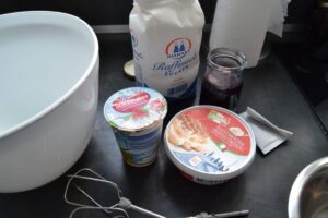 Die Mascarpone, Sahne, Blaubeerkonfitüre