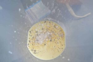 das Eigelb und die Mischung geben