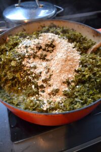 Grünkohl fällt dann zusammen etwas Salz und den Zucker zugeben