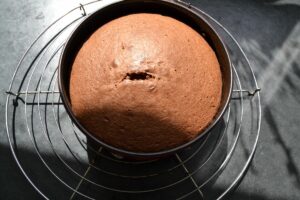 den Backofen auf 180 Grad Umluft vorheizen und den Boden einer kleinen 18 Springform mit Backpapier auslegen. Den Teig ca. 30 Minuten backen