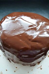 Den Schokoladenguss langsam auf die kalte Torte geben