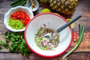 Die Salsa noch einmal mit etwas Salz und, wenn nötig, etwas zusätzlichem Limettensaft abschmecken. Vor dem Servieren den Ananas Salsa Dip am besten 1–2 Stunden im Kühlschrank durchziehen lassen. So verbinden sich die Aromen besonders gut.