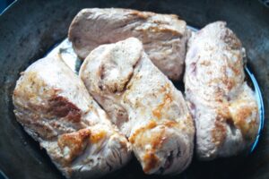 als Nächstes kommt das angebratene Schweinefilet auf die Füllung.