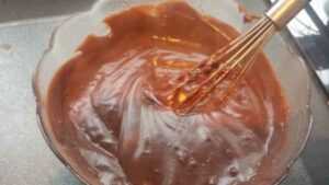 Nun die Torte vorsichtig stürzen und mit der restlichen Kuvertüre gut bestreichen . Ich habe sie über den Kuchen gegossen und verteilt.