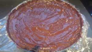 ca. 200 Gramm Kuvertüre schmelzen und den Boden gut bis zum Rand einstreichen .