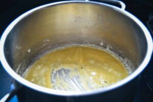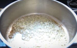 in die Mehlschwitze gießen und gut rühren, das sich keine Klumpen bilden. Die Jakobsmuscheln,