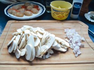 Die Jakobsmuscheln säubern und den Corail und Darm entfernen