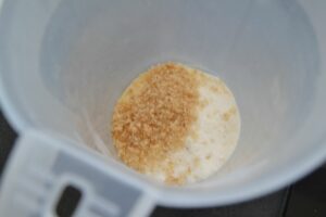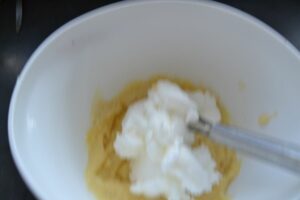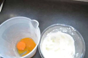 Das Eiweiß mit einem Schneebesen unter den Brei heben
