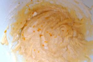 den Grieß mit dem Zucker, Salz und der Zitronenschale mischen