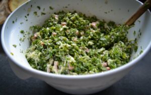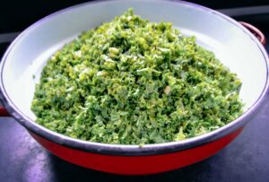 Grünkohl der am besten in einer Salatschleuder gut trocken schleudern