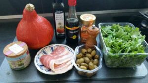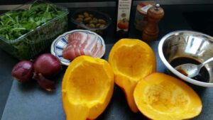 Gericht: Backen, Einfach, Gewürze, Gut vorbereiten, Herbst, Kürbis, Salat, Schwein