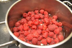 Die Himbeeren in einen Topf legen und das Wasser dazu gießen