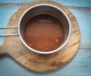 1 El Preiselbeeren unter die Sauce rühren und mit etwas Salz abschmecken und falls die Soße etwas sämiger gewünscht, mit kalten Butterwürfeln oder etwas Speisestärke abbinden.