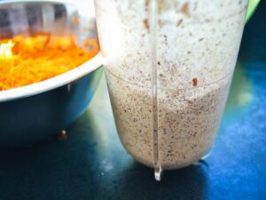 Den Teig in eine ausgefettete 24 cm Springform füllen und im vorgeheiztem Backofen bei 170 ℃ Umluft auf mittlerer Schiene ca. 50 min. backen, gegen Ende der Backzeit am besten die Stäbchenprobe machen und mit Holzstäbchen in den Carrot Cake stechen und schauen, ob der Kuchen fertig ist. Es sollte kein Teig mehr am Holz hängen bleiben.