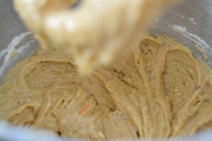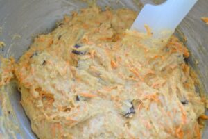 Die geriebenen Möhren und wer mag, die Schokoladen Drops unter den Teig heben.