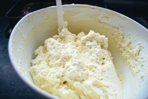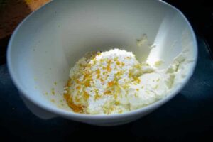 Zitronensaft, der geriebenen Zitronenschale, dem Vanillezucker gut verrühren.