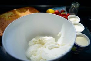 Die Zitrone mit warmen Wasser waschen und die Schale einer halben Zitrone in den Quark reiben. Den Quark mit dem