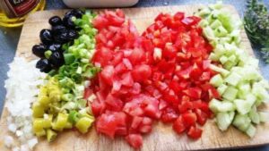 Wenn Du auf der Suche nach einem einfachen, vegetarischen Gericht bist, das perfekt für heiße Sommertage und Grillpartys ist, probiere diesen köstlichen griechischen Kritharaki Salat mit Feta! In meiner Schritt-für-Schritt-Anleitung erfährst du, wie du ihn zubereiten kannst. In den Kritharaki Nudelsalat kommt Feta, Oliven, Paprika, Tomaten und frischer Rucola. Dieser tolle sommerlicher Orzo Nudelsalat passt super zu allem gegrilltem und lässt sich gut einige Stunden vorher zubereiten.